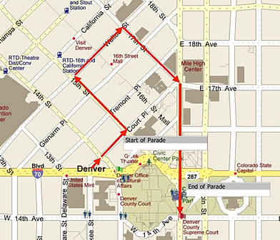 Click on the above link to find out more about the Veteran's Day Parade. It is taking place on November 8, and begins at 10AM on Colfax and 14th. The Parade Route is below.